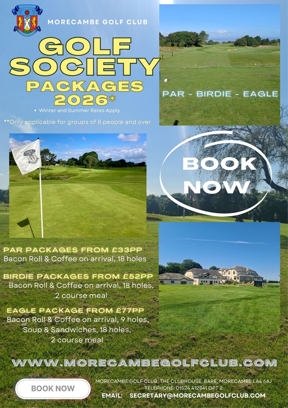 Take advantage of our price freeze for 2026 for groups of 8 or more - Book now by filling out the enquiry form using the link below, email secretary@morecambegolfclub.com or phoning the office on 01524 412841